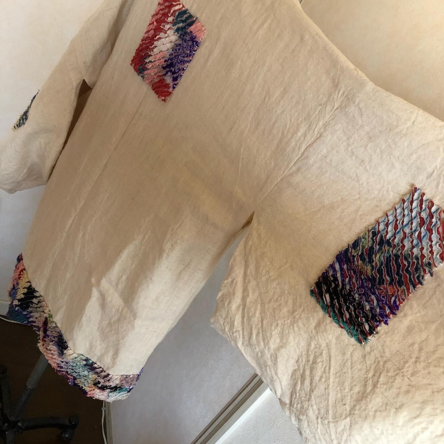 ヘンプ100%の羽織り、部分パーツはスラッシュキルトを配置しました。