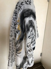神社で祈祷を受けたときに感じた、龍神の力強さと存在感を表現したいという思いから生まれた商品です。デザイナーが数々の試行錯誤を重ね、ついに完成したショールは、龍神の祝詞を手書きしています。ヘンプ素材にこだわり、職人がひとつひとつ手作りで仕上げています。