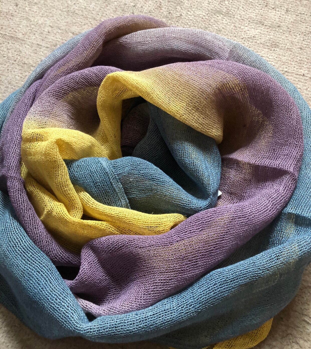 それだけでなく、草木染めによる自然な色合いと香りが、心を豊かに癒してくれます。さらに、ヘンプが持つ波動効果によって、身に着けたときの感じ方も変わるかもしれません。是非、このショールで日常のストレスを忘れ、心地よい癒しの時間を過ごしてください。